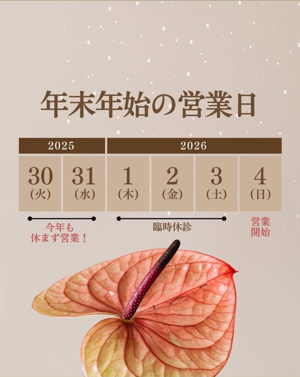 年末年始の営業日・ご予約ルールにつきましてご案内です🎅🎍ご不明点はお気軽に公式LINEへお問合せください❕💙※休診日:2026/1/1~1/3